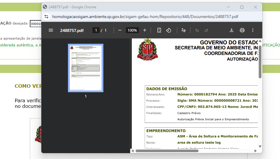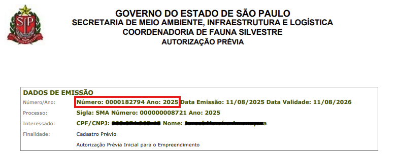 3. Caso existente, a Autorização será mostrada na tela, permitindo a conferência de todos os dados nela existentes.